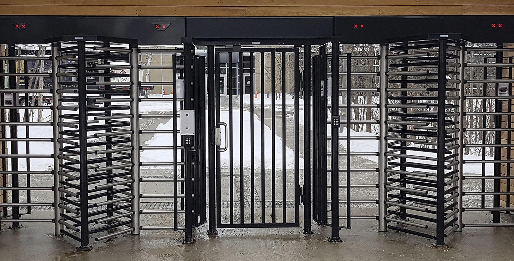 Thanks to its patented locking technology, it is impossible for anyone to become trapped in the event of power failure or attempted unauthorized access. The access through put from the barrier/gate is 30 persons/minute.